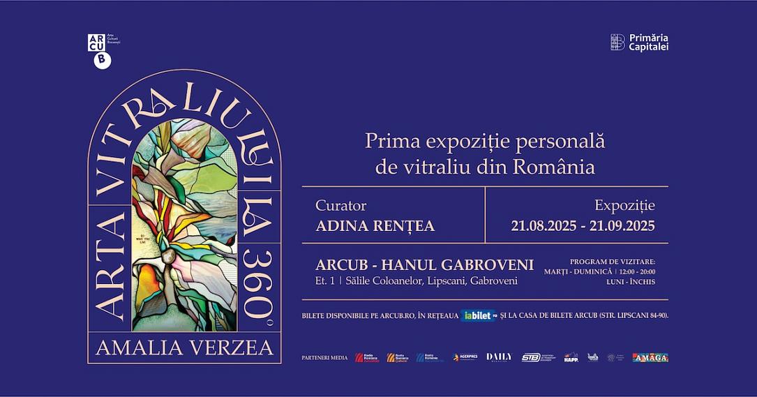 Artist Amalia Verzea will hold her first solo stained glass exhibition in Romania at ARCUB – Hanul Gabroveni in Bucharest. Titled "Arta vitraliului la 360°", the show runs from August 21 to September 21 and will present more than three decades of the artist’s work, created in studios in both Italy and Romania.