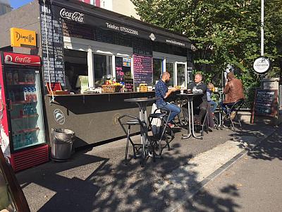A popular street food container, on Buzesti Street, near Bucharest’s Victoriei Square, burned down