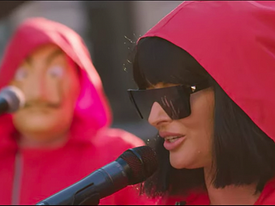 Romanian singer Delia has dressed up as the robbers from the high-rated Netflix series La Casa de