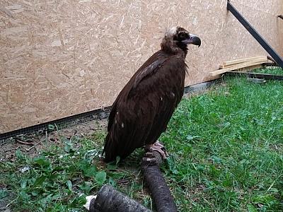 Two black vultures (Aegypius monachus), a species that disappeared from Romania at the beginning of