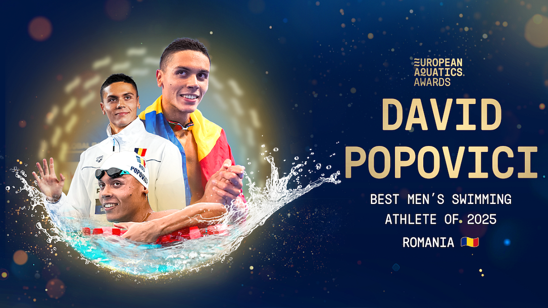 Romania’s star athlete David Popovici has been voted best men’s swimmer in the 2025 European Aquatics Athlete of the Year Awards. According to the official announcement, he “secured 37.94% of the total vote after a year of success at U23 and senior level.”