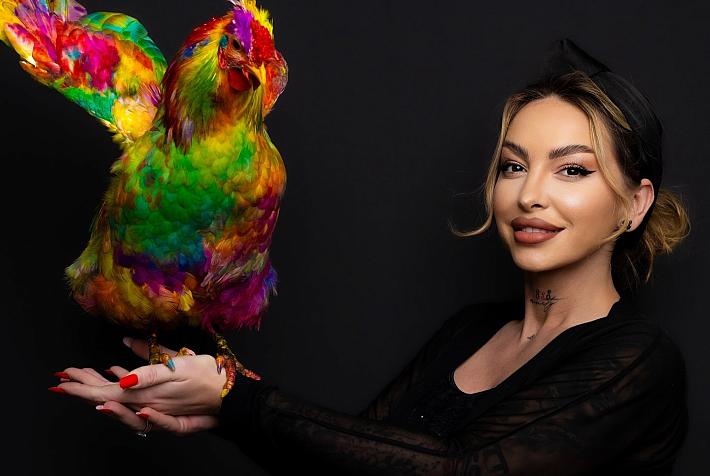 Romania’s first professionally dyed rooster is being auctioned off by Vanessa, an artist known for creatively dyeing...