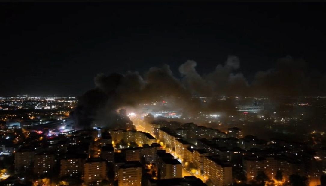 Major fire envelops warehouse near Bucharest’s Mega Mall, causing pollution