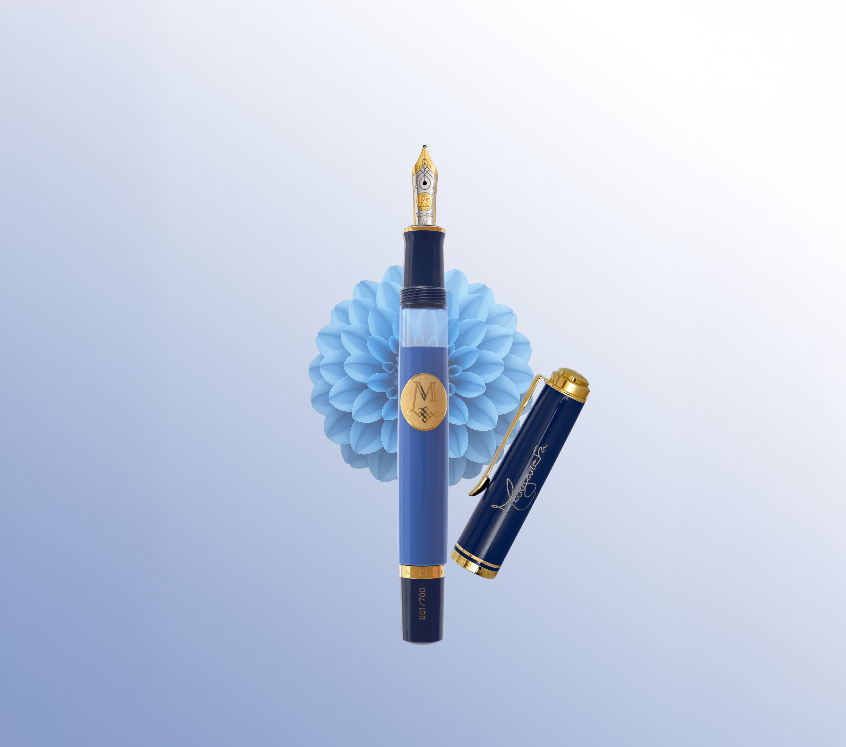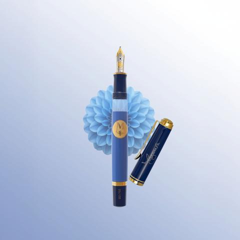 Polished with natural diamonds, the pen is a bright and refined royal blue and decorated with 24K gold-plated accessories. Engraved with the royal motto “Nihil Sine Deo,” the pen also has the seal of Her Majesty Margareta, embedded in the body and reproduced in gold.