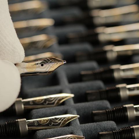 The fountain pen has a 14k gold nib, decorated with rhodium, engraved with an exceptional filigree, and available in size M. It is also equipped with an iridium tip.
