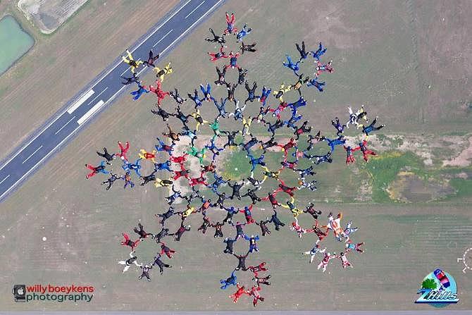 Skydivers from the US, Germany, Mexico, France, UK, Japan, Russia, Casada, Switzerland, Argentina, and Italy also took part in the jump at SkyDive City in Z-Hills, Florida.
