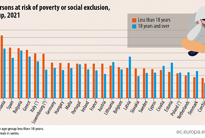Romania has the highest share of children who are at risk of poverty and social exclusion in the EU, according to the...
